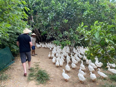 Picking up the bikes from Tigit was relatively painless; a quick spin around the block to ensure everything was in good order; load them up with luggage and plenty of bungee cords, and we were off. We headed for a a recommended route out of the city via a ferry across the Saigon river. The traffic wasn't as scary as we had built it up in our heads and having comms to help each other through the intersections and traffic certainly helped. We avoided the main roads as much as possible as we made our way to Cat Dien, learning the ways of the road and trying to order food and drink with varied success.
